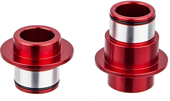 Adaptateurs / réducteurs d’axe pour convertir les moyeux avant à serrage rapide de 9 mm ou axe traversant de 20 mm en système à axe traversant de 15 mm.