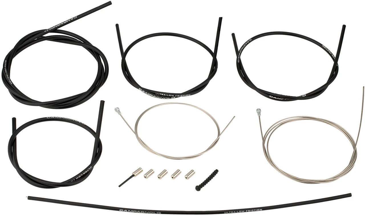 Numéros du fabricant :bright silver:EP15-VLSXCdeep black:EP15-VLBXCContenu :1 paire de leviers de frein / de vitesses Campagnolo Veloce1 x set de câbles (câbles, gaines et embouts)