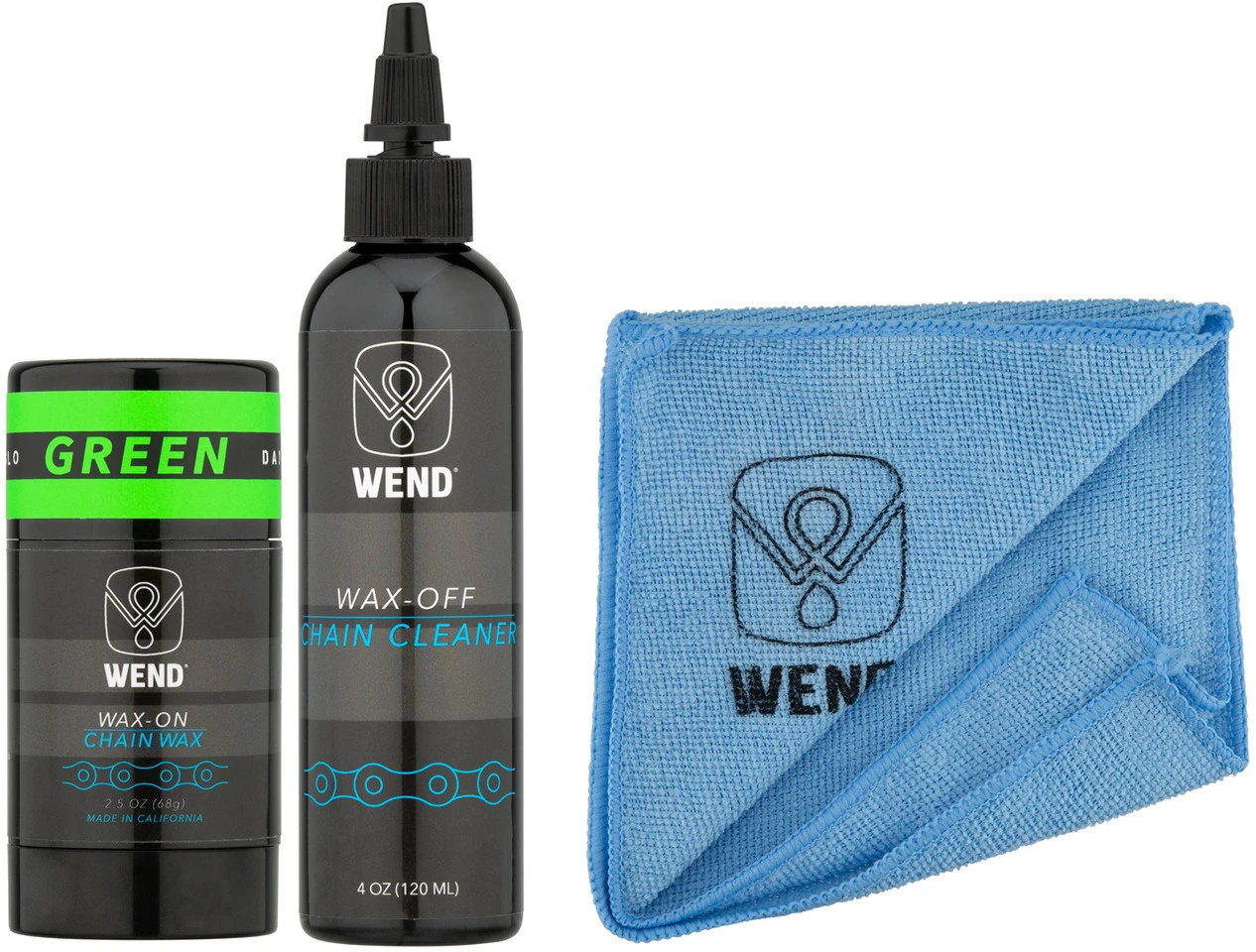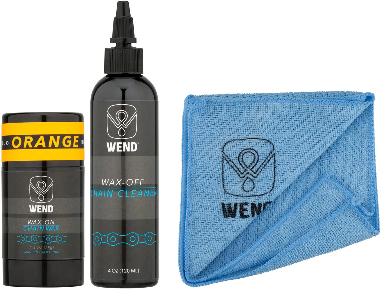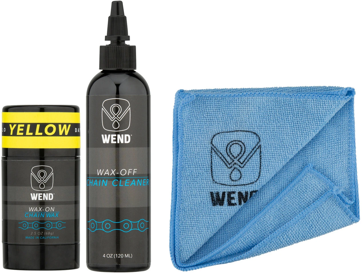 nettoyant pour chaîne Wax-OFFcire pour chaîne Wax-ONNuméros du fabricant :blue:WWWOWOWOBLgreen:VWWOWOGOGorange :WWWOWOWOOOpink:WWWOWOPred:WWWORKyellow:WWWOWOWOYpurple:WWWOWOPLContenu :1 x 120 ml de nettoyant pour chaîne WEND Wax Wax-OFF1 x 80 ml de cire pour chaîne colorée WEND Wax Wax-ON Spectrum Colors1 x chiffon microfibres Tuch