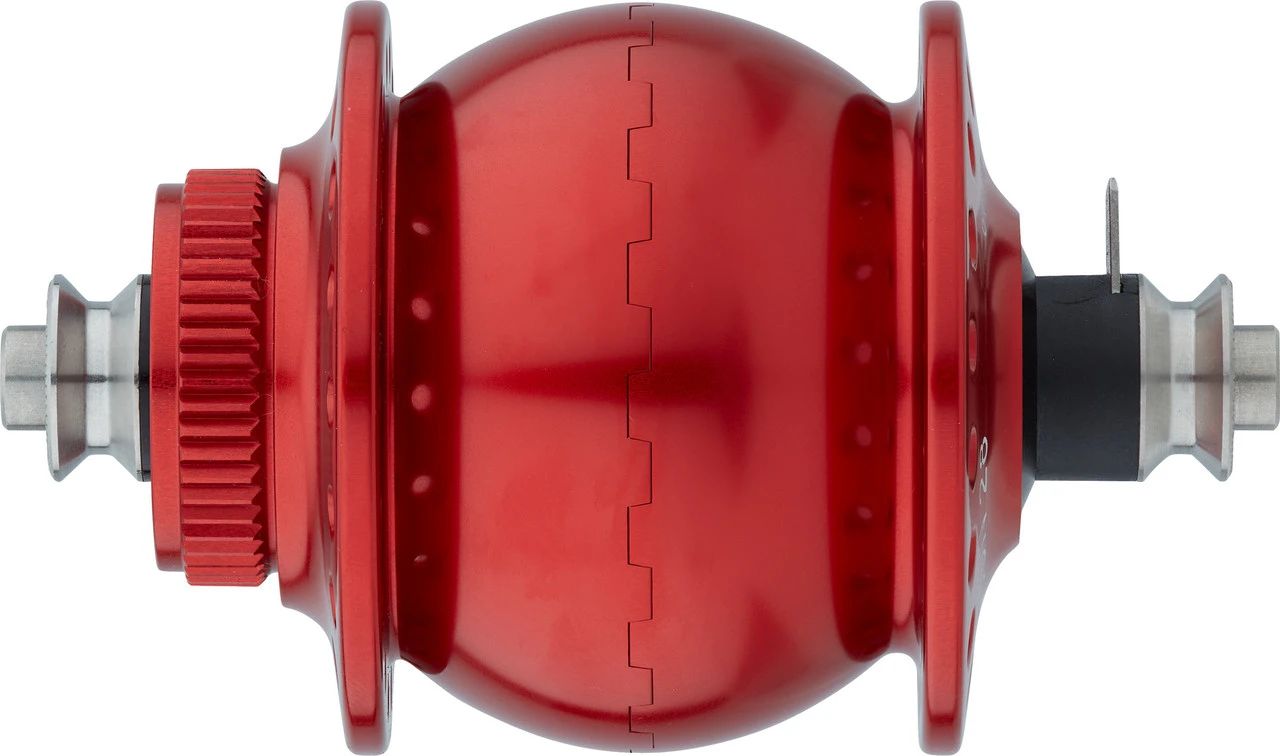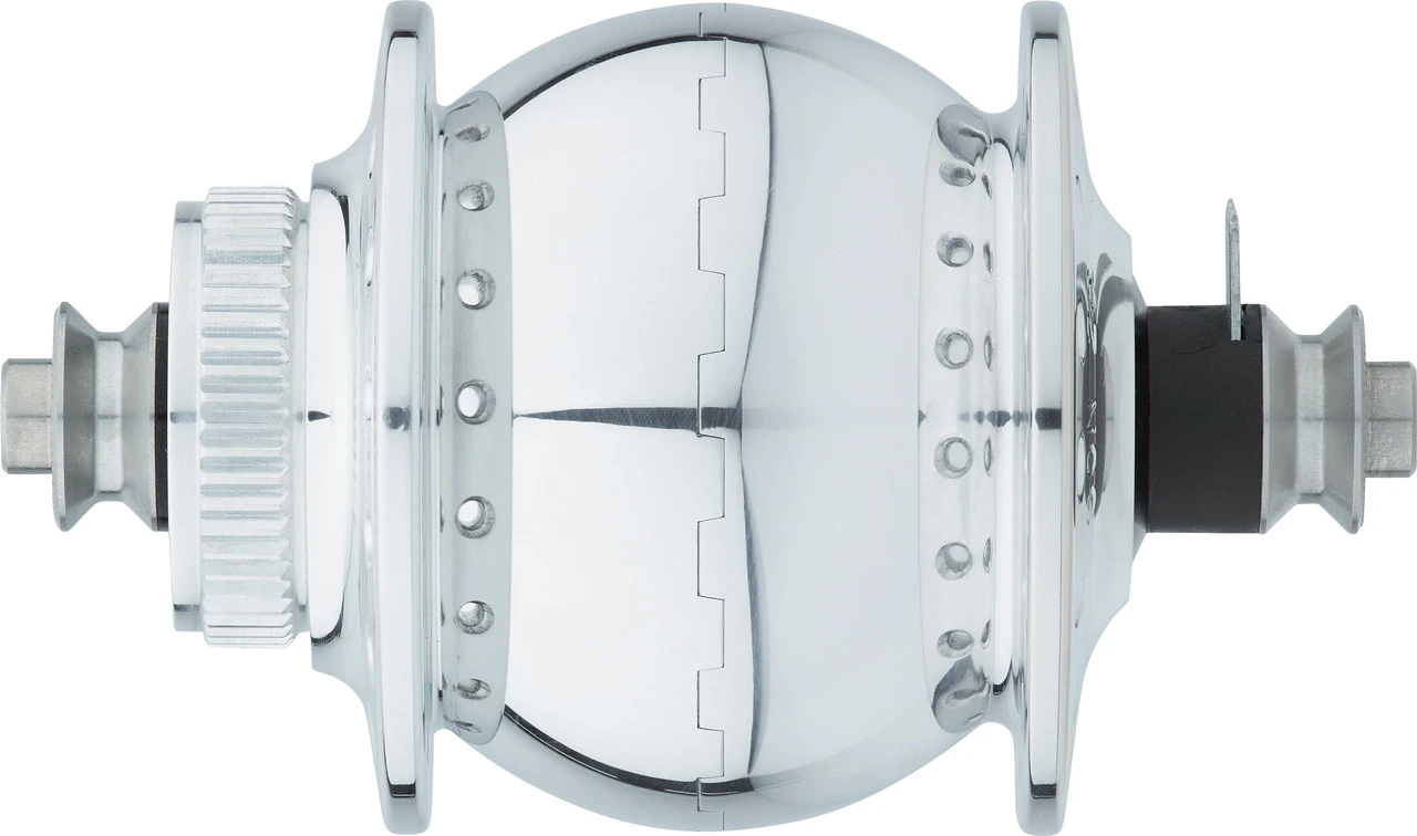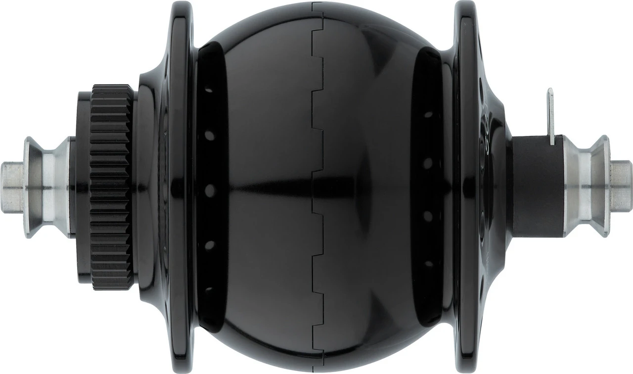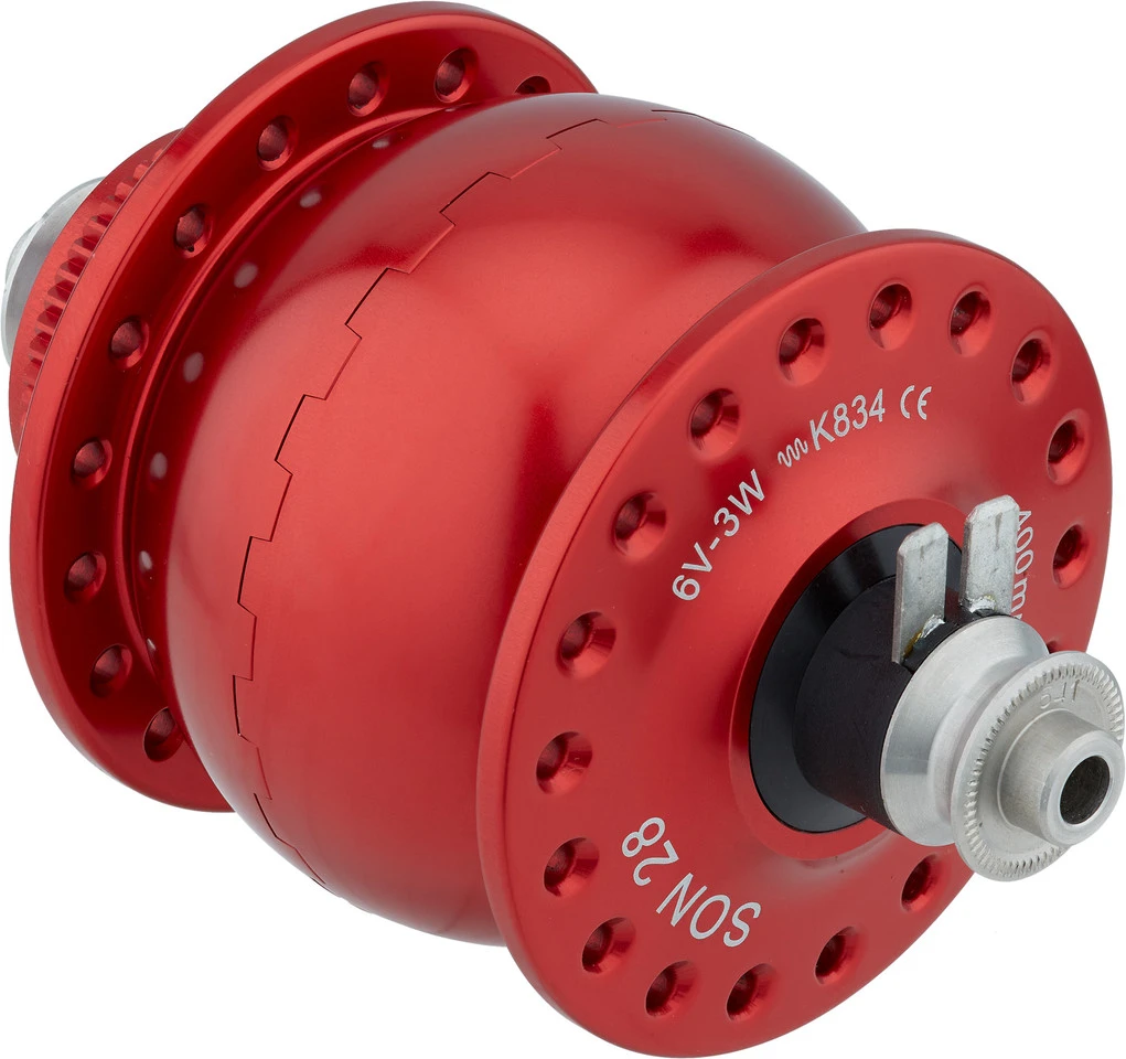 La Son 28 est une dynamo de moyeu universellement approuvée pour toutes les tailles de roues de 16 à 29 pouces. Elle atteint sa puissance nominale dans une roue de 28 pouces à environ 16 km/h. Elle est donc recommandé si un niveau de lumière particulièrement élevé est requis lors d’une conduite lente ou si d’autres appareils doivent être utilisés ou leurs batteries chargées. Par rapport à son prédécesseur Son klassik, les pertes au ralenti ont pu être réduites d’environ 15 % et le poids de 140 g.