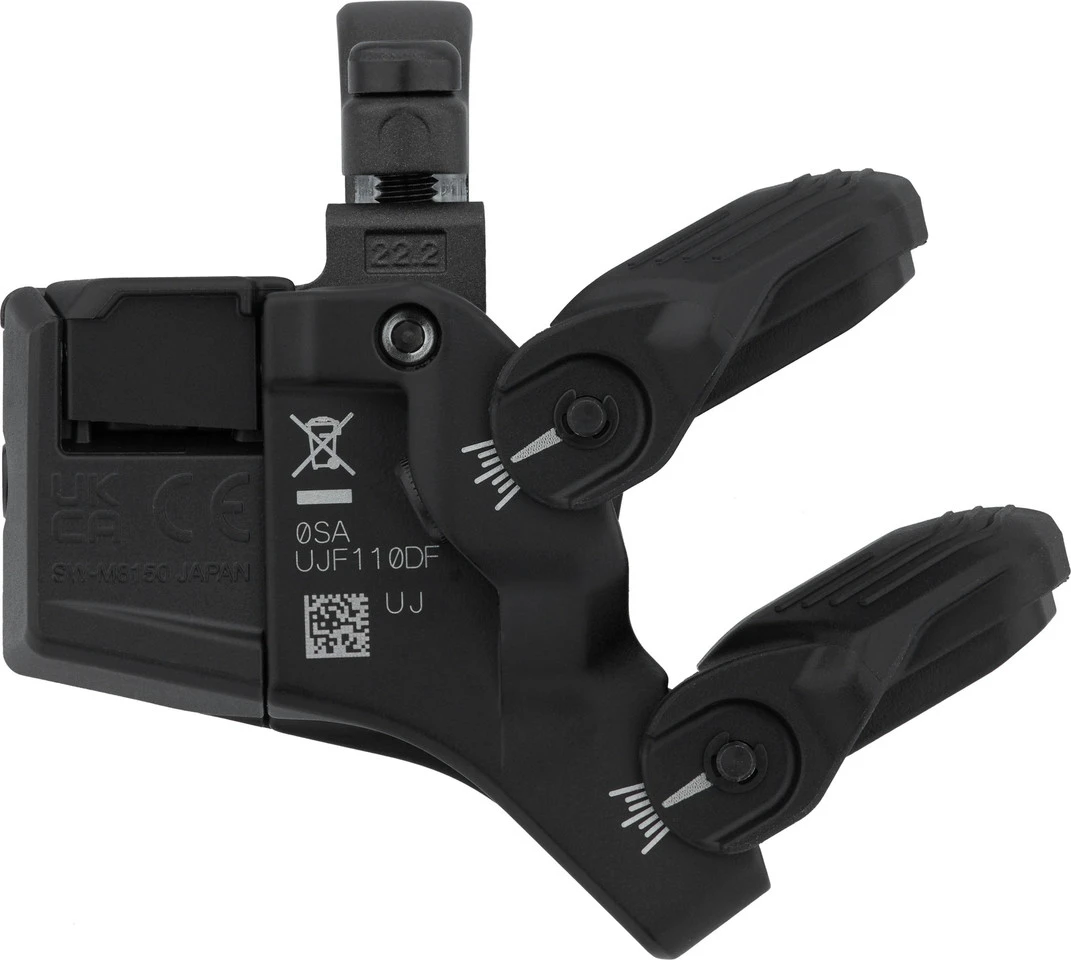 SW-M8150 est fixé sur le côté droit des guidons VTT au moyen d’un collier de serrage de 22,2 mm de diamètre. La connexion au système de vélos électriques Di2 s’effectue à l’aide du câble EW-SD300 de type plus récent.