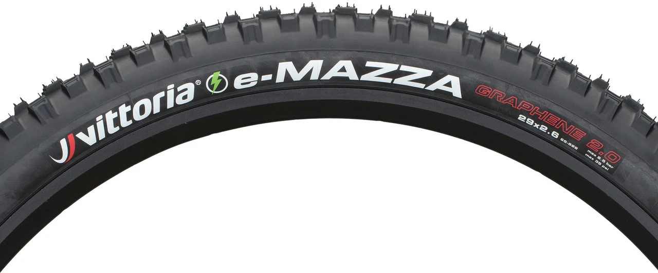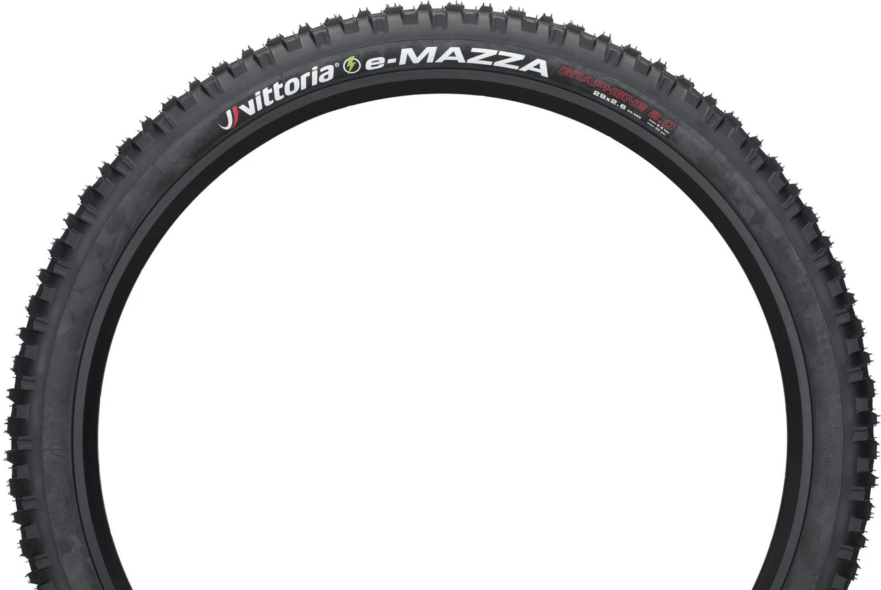 Le pneu souple e-Mazza Enduro 2-ply TLR G2.0 29+ de Vittoria a une résistance au roulement réduite grâce au composé Graphene 2.0. ce qui permet d’augmenter l’autonomie de la batterie.